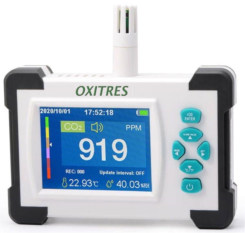 Es un dispositivo capaz de medir la cantidad de dióxido de carbono que hay en el aire. Gracias a estos aparatos, se puede comprobar si en un lugar determinado hay una buena calidad de aire o si, por el contrario, el aire del espacio es malo. El medidor de CO2 puede ayudar a prevenir los contagios por la COVID-19, si el resultado de la medición nos informa de que el aire no es puro, sabremos que hay más riesgo de contagio, y podriamos tomar las medidas oportunas, ventilación, desinfeción,etc.. Desde las Comunidades autónomas se plantean establecer su uso obligatorio en la hostelería o las aulas, así como en aquellos lugares públicos donde hay más concentración de personas..